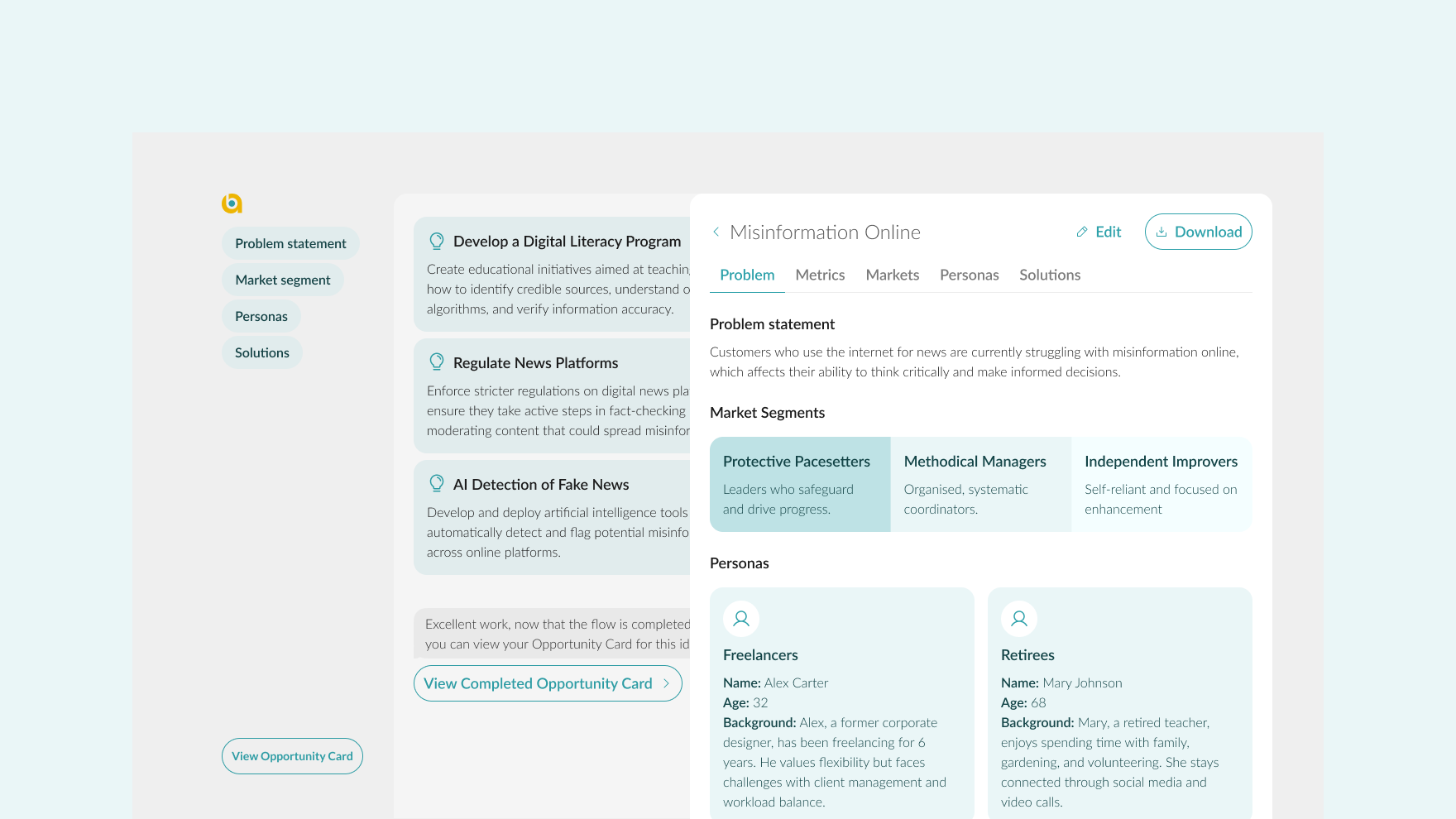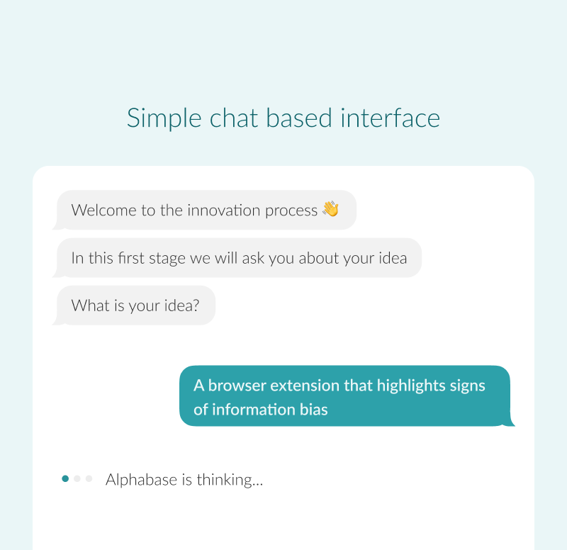 As a UX designer, I played a pivotal role in developing Alphabase's solution. I focused on creating a user-friendly and intuitive interface that seamlessly guided users through the ideation process.